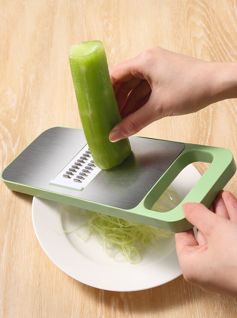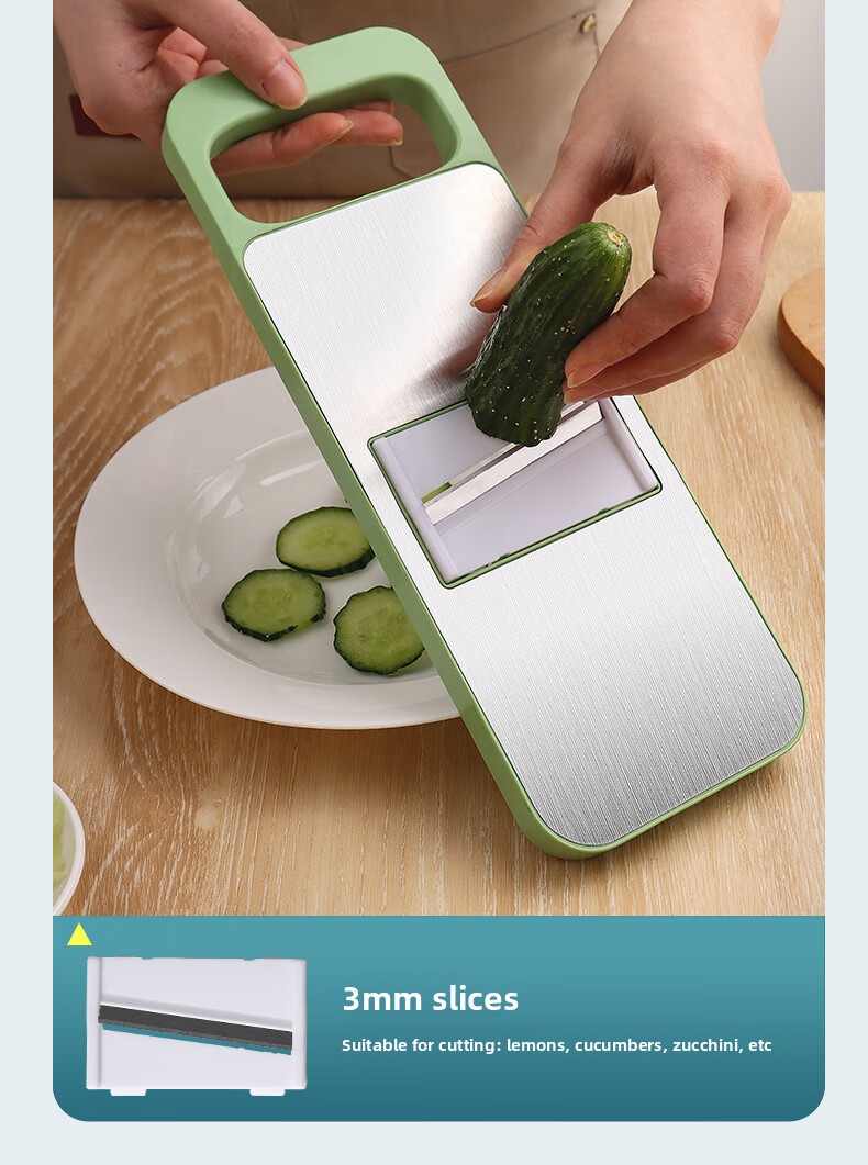 Included Components: 5 blades (slicing, shredding, grating, dicing), hand guard