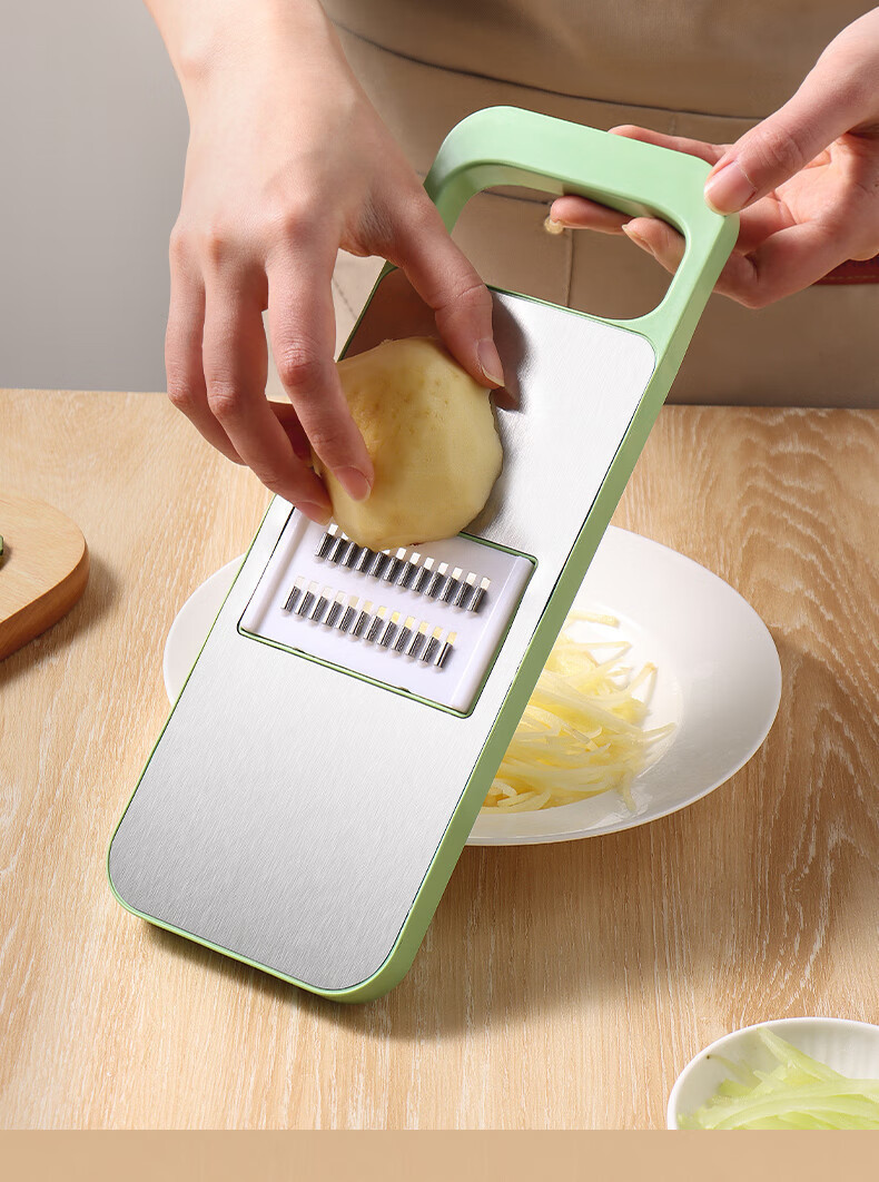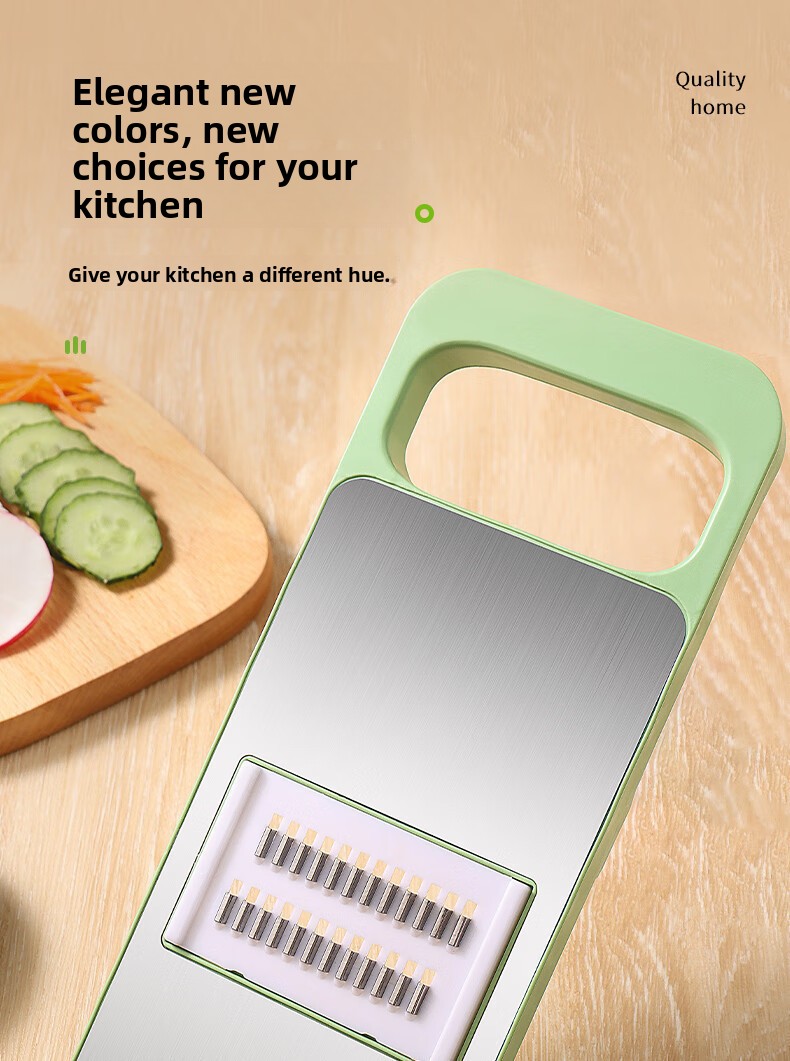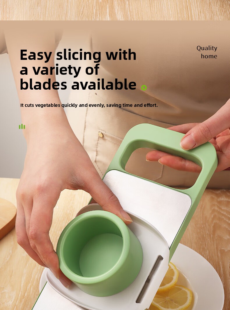 Multifunctional: Five interchangeable blades for slicing, shredding, grating, and dicing vegetables efficiently.